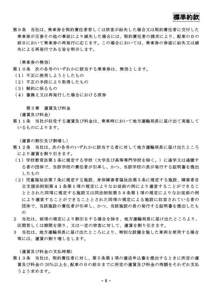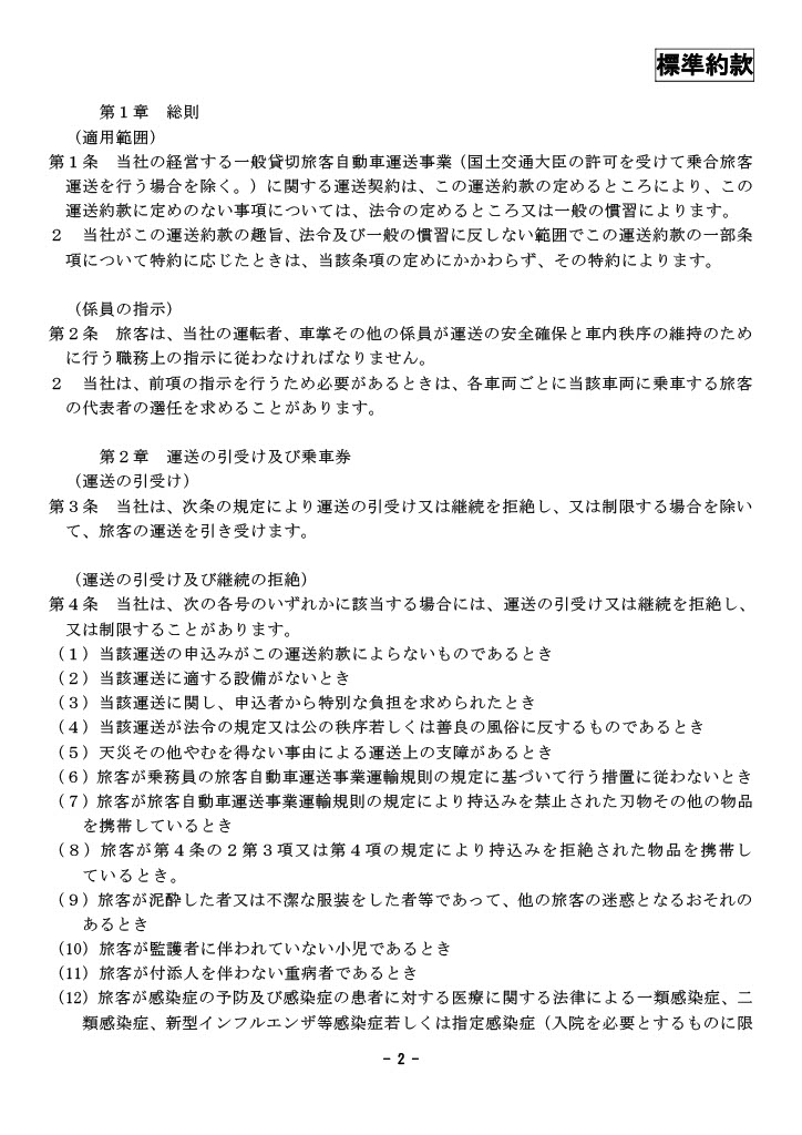 当社は[一般貸切旅客自動車運送事業標準運送約款]の適用事業者です。
