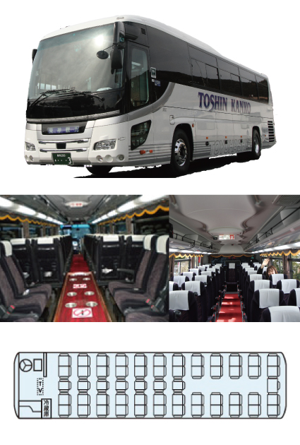 | 定員数 | 60人乗り(正座 49席 + 補助席 11席) ※12列前向き固定 |