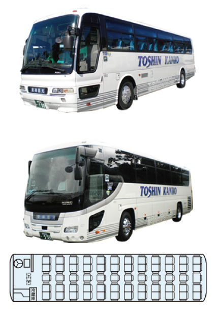 | 定員数 | 53人乗り(正座 49席 + 補助席 4席) ※2列回転サロン(要事前申込) (使用時の正座は45席となります) |